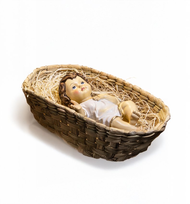 Nuestro set incluye un Niño Jesús en su pesebre (disponible en dos tamaños), dentro de una elegante caja de regalo. Cada paquete trae una bolsita a la medida y un juego de cartas llamadas “Regalos del Niño Jesús para ti”, ideales para compartir en la cena navideña y también en otras ocasiones significativas como Año Nuevo o cualquier reunión especial.